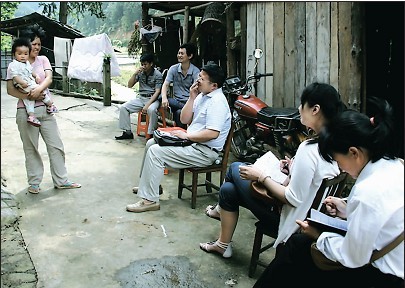面对记者的采访,漕滩村村民们向记者细说移民中出现的问题,提出自己的要求。 本报记者 郭磊 摄