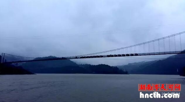 一会儿,前面出现一座横跨江面的钢索吊桥,这是瑶民走出大山的交通要道,也是库区一道亮丽的风景线。弃舟登岸,我们朝吊桥走去。听当地人介绍,这里分别建有两座200多米长的钢索吊桥,一座为龙桥,一座为凤桥。在桥的两端各建了两个览胜亭,上书“瑶池云影”、“天河飞虹”、“江亭烟霞”、“雾桥松风”等。亭子外梁雕着龙、凤,龙腾天下,凤舞九天。亭子内梁刻着瑶民对歌、打猎、放牧等民俗风情画,栩栩如生。与吊桥相望的湖心亭,伫立于水中央,成为这天河瑶池中的点晴之笔。身处亭台之上,举目四望,山环水绕,烟雨缠绵,这是一个多么富有诗情画意的地方啊!